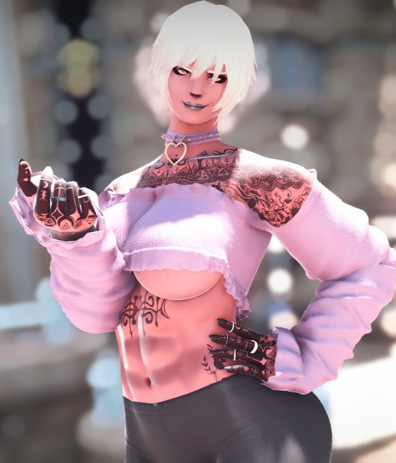 ㅤㅤㅤNa Theine embodies the refined tastes and entitlement of Ul'dah's aristocracy alongside the robust heritage of her Hellsguard Roegadyn lineage. Standing tall at 6 foot 11 with an Amazonian build that commands attention, she exudes big brat energy, unapologetically indulging in lavish experiences and hedonistic pleasures.ㅤㅤㅤIn her perpetual search for entertainment Na can come off as spoiled and petulant. Her privileged upbringing has ingrained in her a sense of entitlement, firmly believing that the world should cater to her desires. Her penchant for extravagance extends to lavish parties, gourmet cuisine, and luxurious comforts, reveling in the sensory delights of Eorzea.ㅤㅤㅤDespite her hedonistic tendencies and brash nature, Na is at her heart a good person, known for her generosity towards friends and causes she believes in. But what truly sets her apart is her exceptional skill as a seamstress. Clients seek her out not only for her exquisite designs but also for the attention to detail and innovative techniques she brings to every garment. Beneath her indulgent exterior lies a compassionate soul driven by ambition and a desire to prove herself worthy of her status. Na channels her creative energy and determination into her craft as a seamstress and merchant, navigating the challenges of wealth, ambition, and personal growth with grace and determination.
